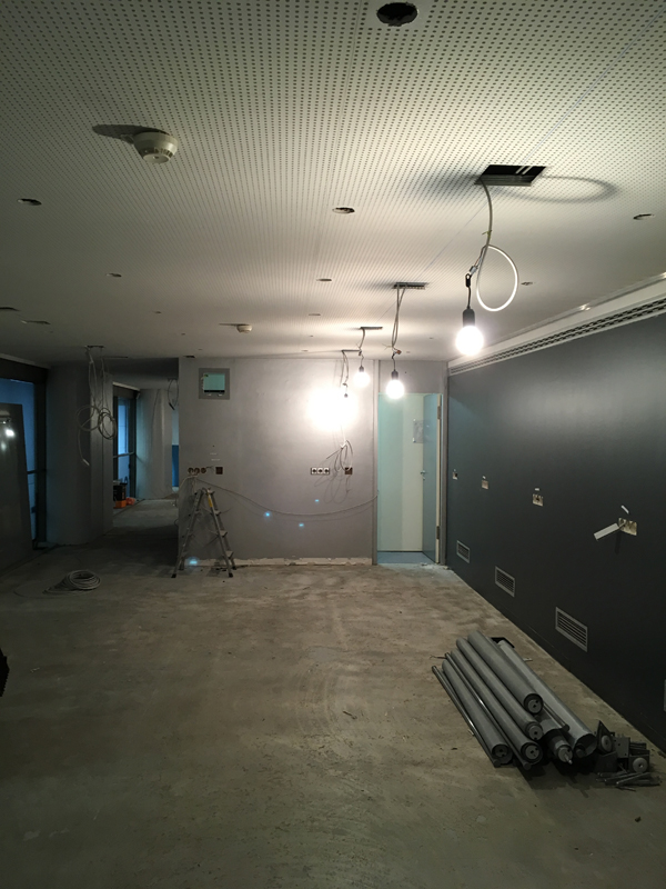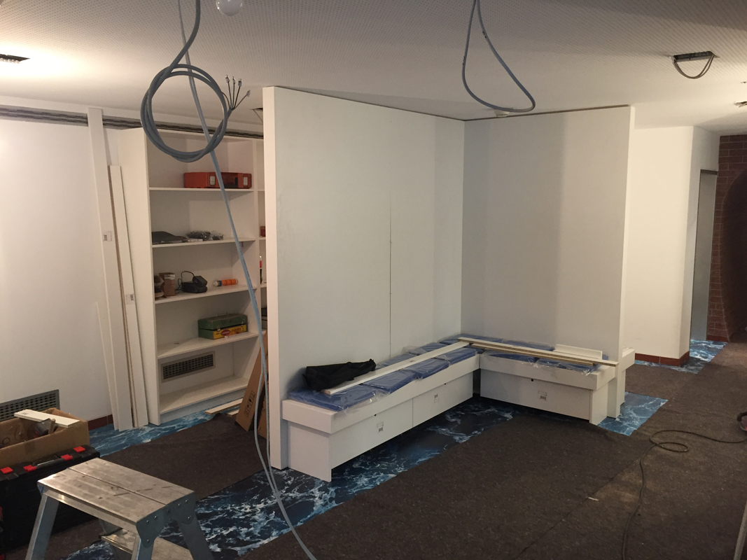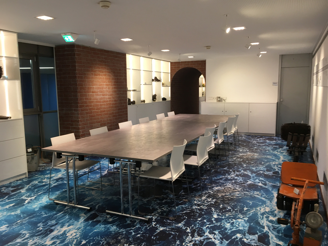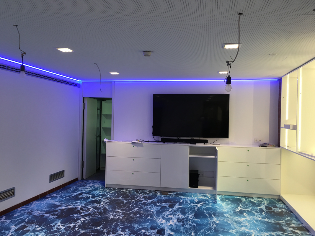 Die ersten Schritte der Projektumsetzung waren dann: eine detaillierte Bedarfsabfrage bei den beteiligten Mitarbeitern der SES, eine realistische 3D-Visualisierung unseres Raumkonzepts, die Vorauswahl von Lieferanten, Einrichtungsgegenständen, Technik und Materialien sowie eine detaillierte Terminplanung mit allen beteiligten Gewerken. Die Auswahl und die Beauftragung erfolgte dann durch den Kunden SES selbst.