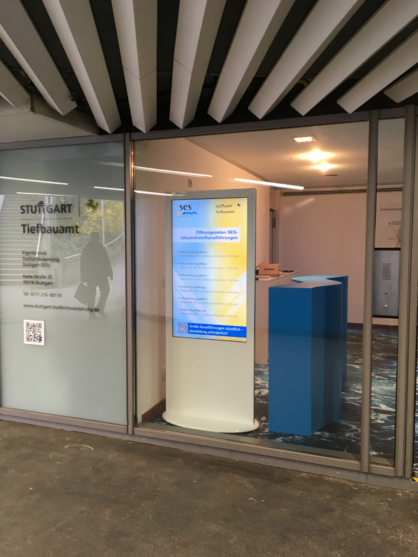 - Informationsvermittlung nach innen über eine 58-Zoll-Touchscreen-Stele mit gut strukturierten Inhalten über die SES und das Tiefbauamt