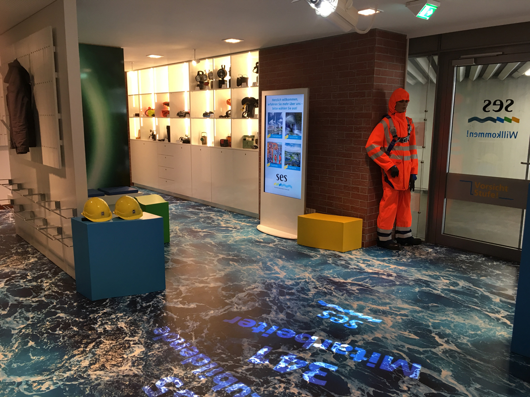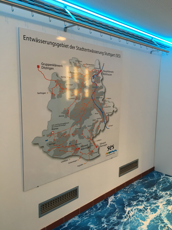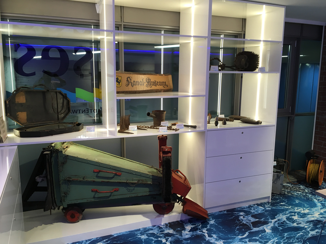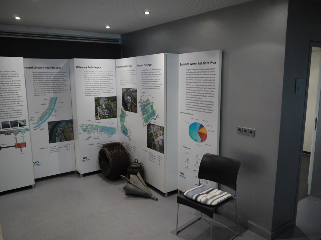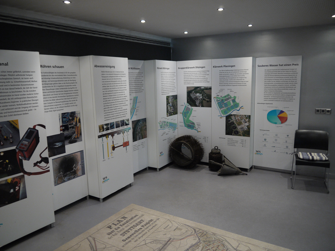 - dekorative Großdrucke, z. B. einen Kanalplan von 1874, das heutige Entwässerungsgebiet der SES und ein 7 Meter langer Zeitstrahl mit der kompletten Historie der SES