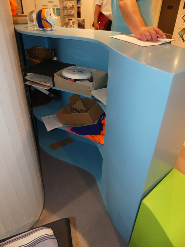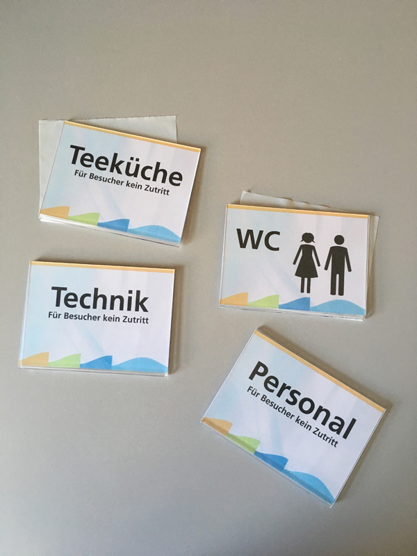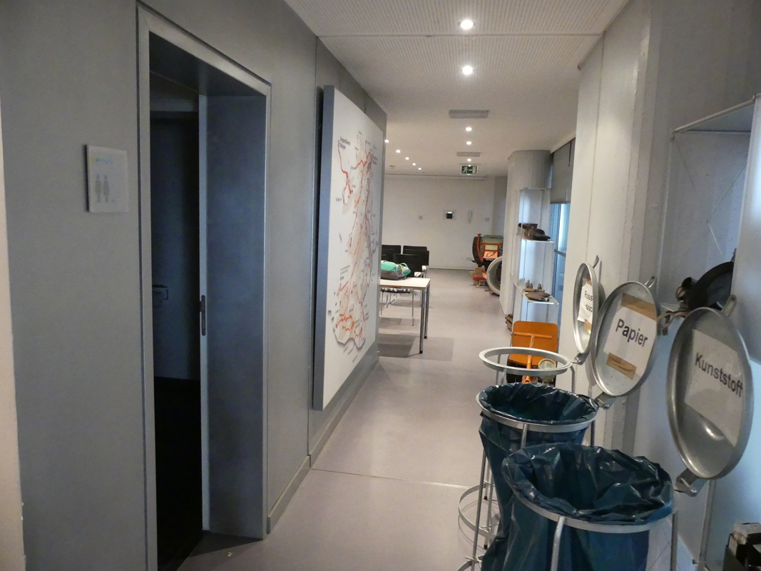 - Schaffung von optimalen Aufbewahrungsmöglichkeiten für den Bedarf der Bewirtung (Führungen und Besprechungen separat) sowie für Informations- und Büromaterial