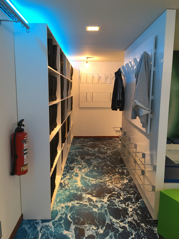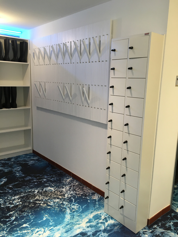 - Schaffung von umfassenden Aufbewahrungsmöglichkeiten für alle Ausrüstungsgegenstände (Schutzanzüge, Gummistiefel, Helme, Gurte …)